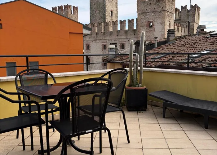 Luxury Castle View Lägenhet Sirmione ligger i Sirmiones centrum, ganska nära Chiesetta di S. Anna. Den här lägenheten erbjuder utsikt över staden och en terrass.